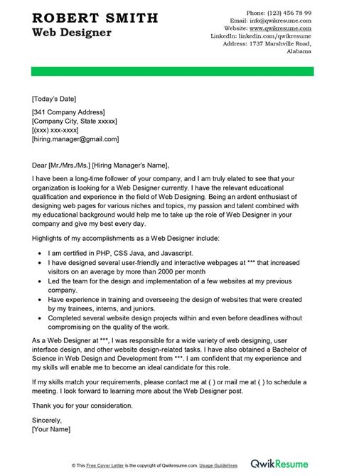 Writing JobWinning Web Developer Cover Letters Template and Example