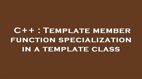Template Member Function Specialization - An explicit specialization may be declared for a function template, a class template, a member of a class template or a member. A template has only one type, but a specialization is needed for pointer, reference, pointer to member, or function pointer types. Learn how to create and use member function templates in classes and structs, including syntax, instantiation, and.